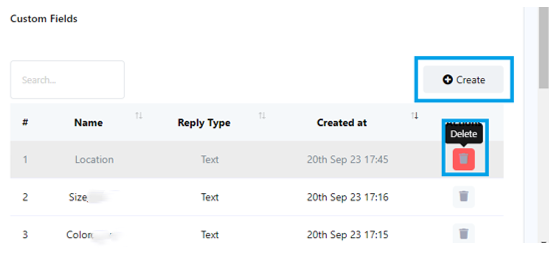 - You can also use the `Delete` button to remove existing Custom Fields.