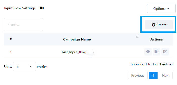 - Click the `Create` button to initiate the creation of a new User Input Flow.