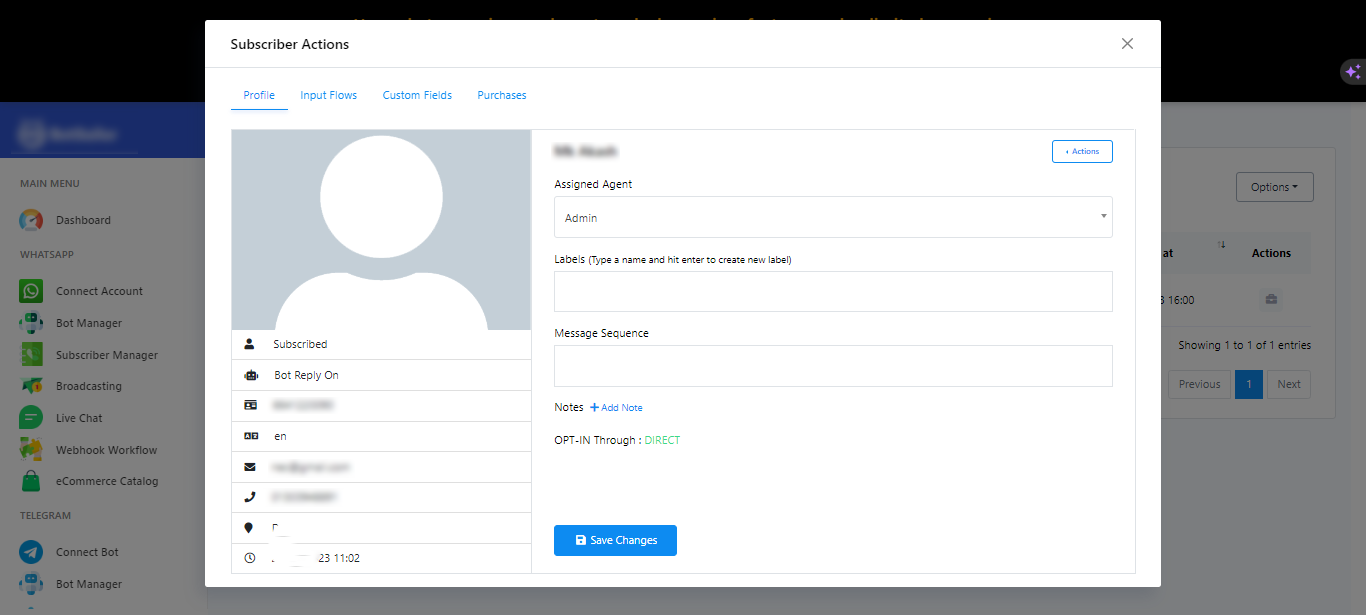 Managing Subscriber Actions: After clicking on the report button, it will take you to the subscriber manager of input flow. So that you can see the reports for a specific subscriber.